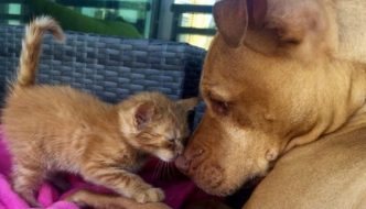 La pitbull Bubba adotta la gattina Rue
