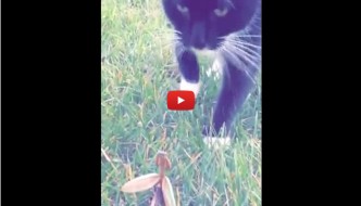 Mantide religiosa mette in fuga gatto [VIDEO]