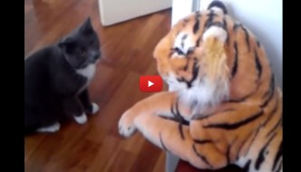 Gatto scatenato contro la tigre di pezza [VIDEO]