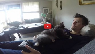 Umano gioca alla Play, ma il gatto vuole solo le coccole [VIDEO]