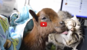 Un’amicizia commovente: il gatto Cody e la capretta Iker [VIDEO]