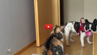 Cagnolino tenta di giocare, ma il gatto lo ignora [VIDEO]