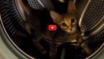 Gattino si crede criceto dentro la lavatrice [VIDEO]