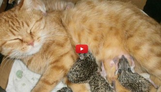 Mamma gatta adotta 4 ricci orfani [VIDEO]